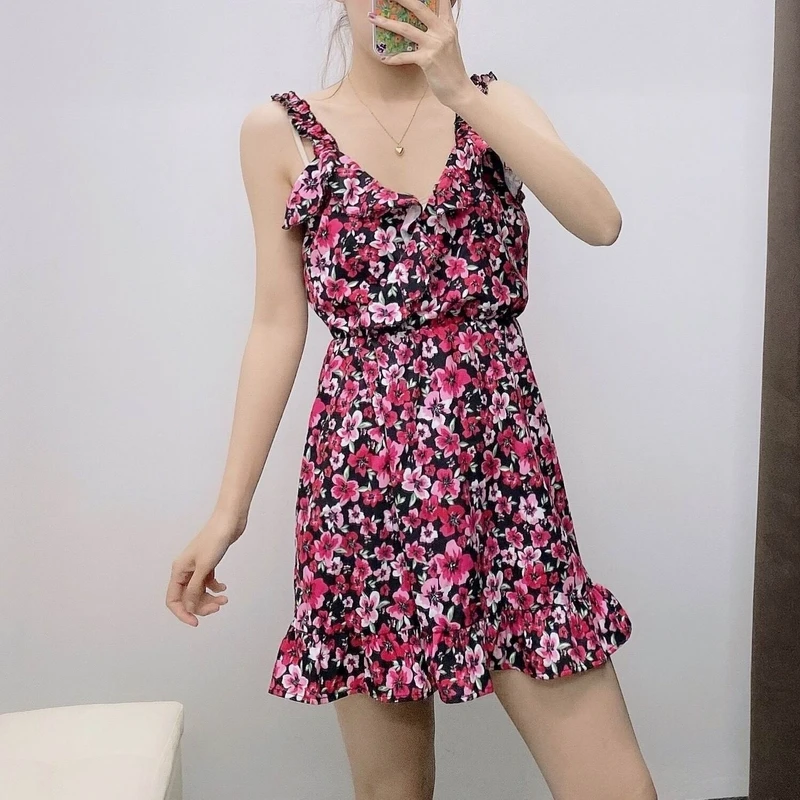 Летнее платье 2020 Новая мода выше колена без рукавов женское Цветочное платье