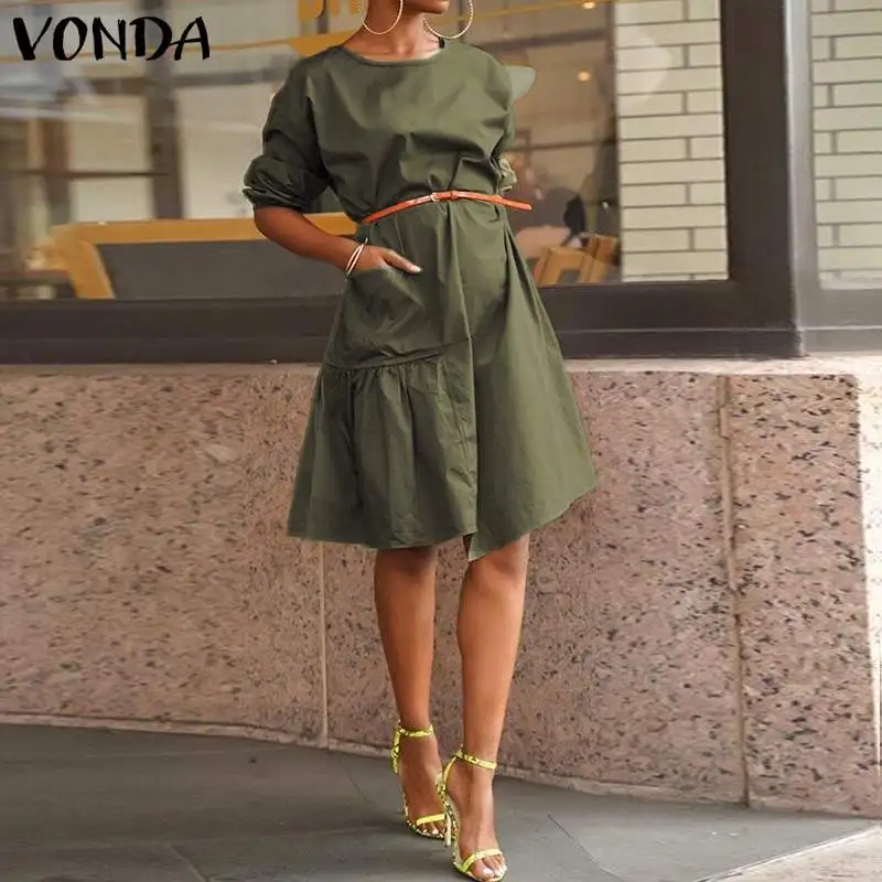 Женский сарафан в стиле пэтчворк, VONDA, 2019, летнее платье миди, кафтан, Повседневная Туника без рукавов, Vestido, Женская праздничная одежда разме...