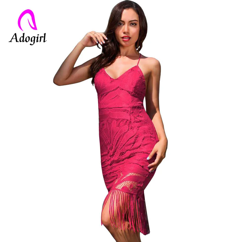 Adogirl прозрачное Сетчатое лоскутное кружевное платье на бретельках для женщин модное сексуальное облегающее Клубное платье миди