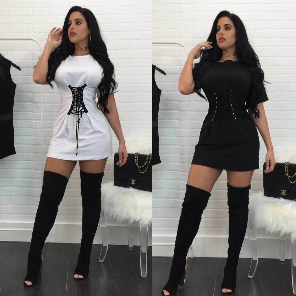 Bkld Летняя Повседневная футболка Для женщин сексуальное платье короткий рукав o-образным вырезом черный, Белый Цвет Тонкий бинты Платья для ...