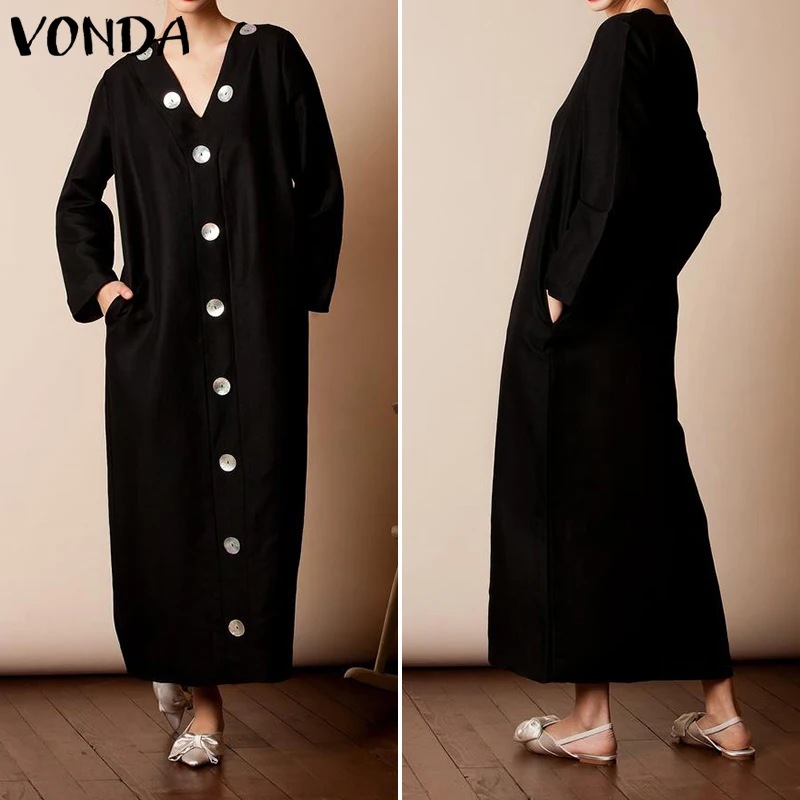 Длинное Макси платье VONDA женские летние платья элегантные однотонные с v-образным вырезом и длинным рукавом сексуальные платья плюс размер ...