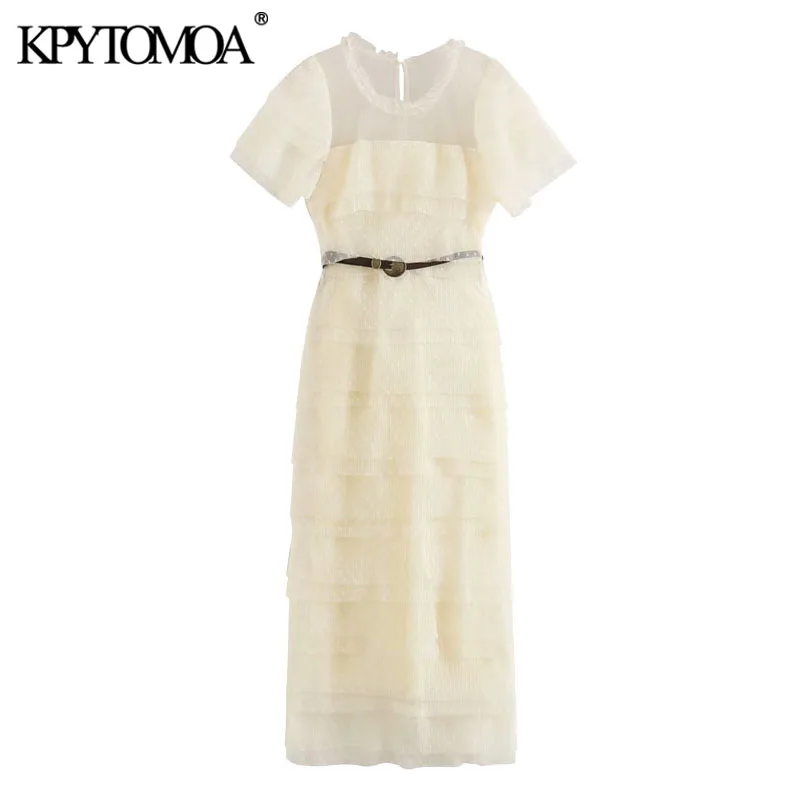 Женское платье средней длины KPYTOMOA, винтажное платье с круглым вырезом и коротким рукавом из фатина с оборками и поясом, 2020