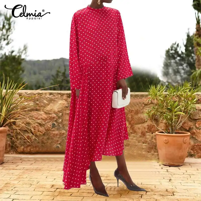 Женский сарафан в горошек Celmia, длинное платье с оборками, асимметричное Повседневное платье макси, 5XL