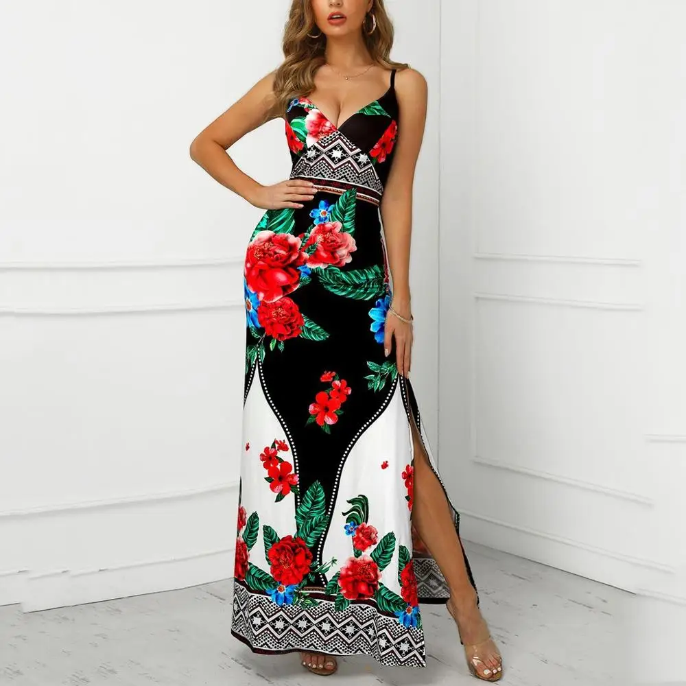 2018 новое популярное женское платье сексуальное платье без рукавов с цветочным принтом в стиле бохо пляжное для вечеринки летнее женский с а...