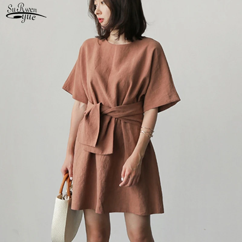 Летнее платье 2020, пуловер с круглым вырезом, женское платье, хлопковое повседневное свободное однотонное платье с коротким рукавом, женские платья до колена, Vestidos 8791 50