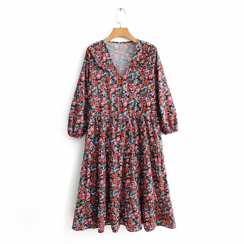 2019 женское модное цветочный принт богемный длинное платье ZA женское v-образным вырезом с высокой талией шикарное осеннее Boho Макси платья ropa ...
