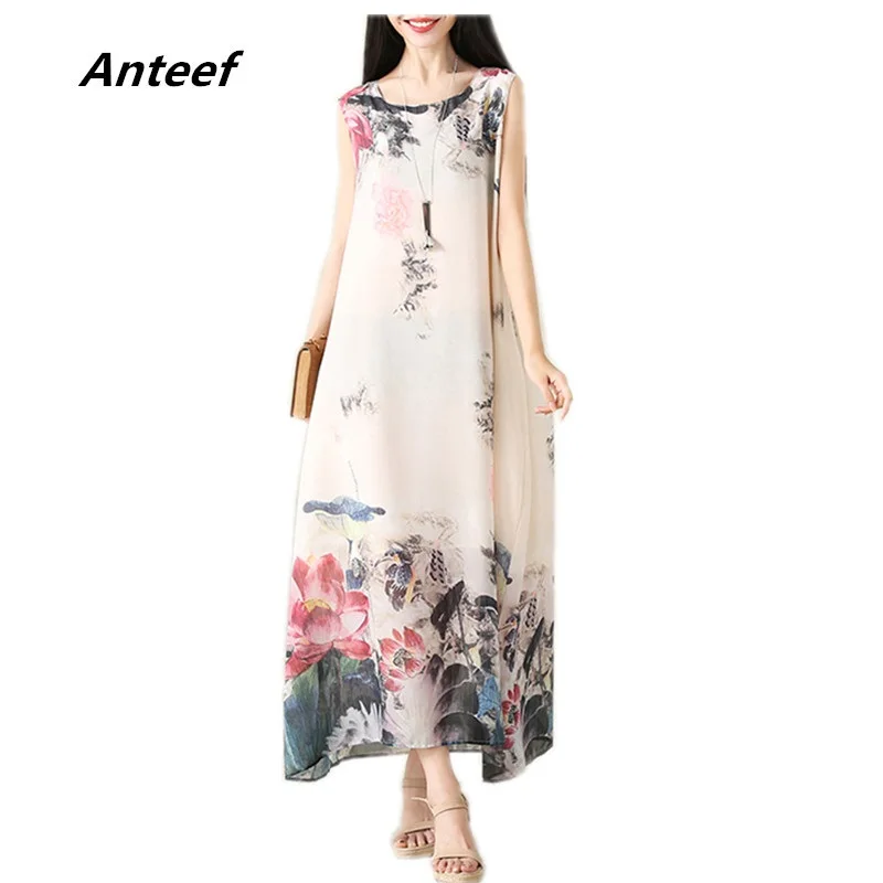 Шифоновое платье размера плюс, винтажное, цветочное, женское, повседневное, длинное, свободное, летнее, Пляжное, для вечеринки, элегантное, ...