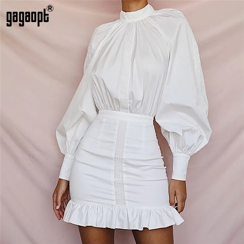 Gagaopt, сексуальное платье с открытой спиной и рюшами, с длинным рукавом, Осень-зима, модные вечерние платья с высоким воротом, Клубные женские ...