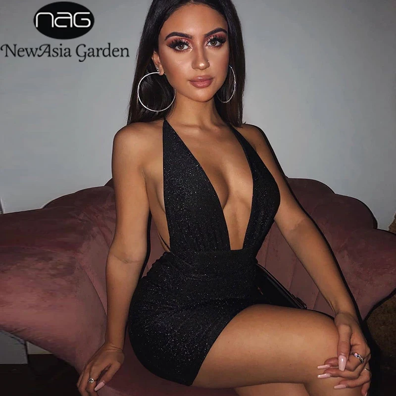 Блестящее вечернее платье NewAsia из яркого шелка для вечерние с глубоким v-образным вырезом и открытой спиной, сексуальное мини-платье со шнуровкой на бретельках, бандажные платья без рукавов 2020