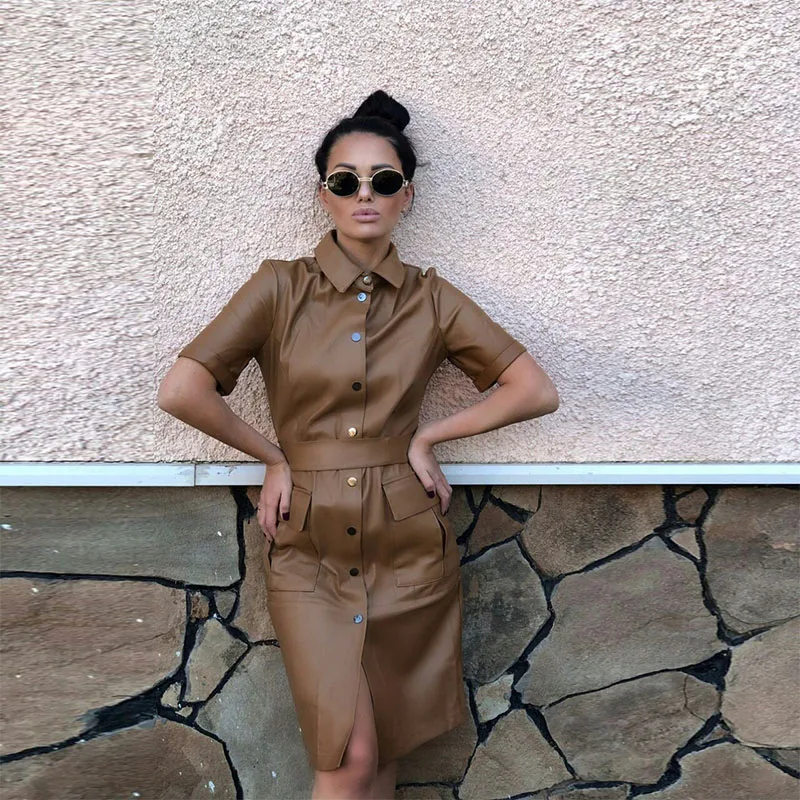 Женское винтажное платье с поясом и карманами, вечернее платье трапециевидной формы с коротким рукавом и отложным воротником, однотонное мини-платье 2020, летнее модное платье