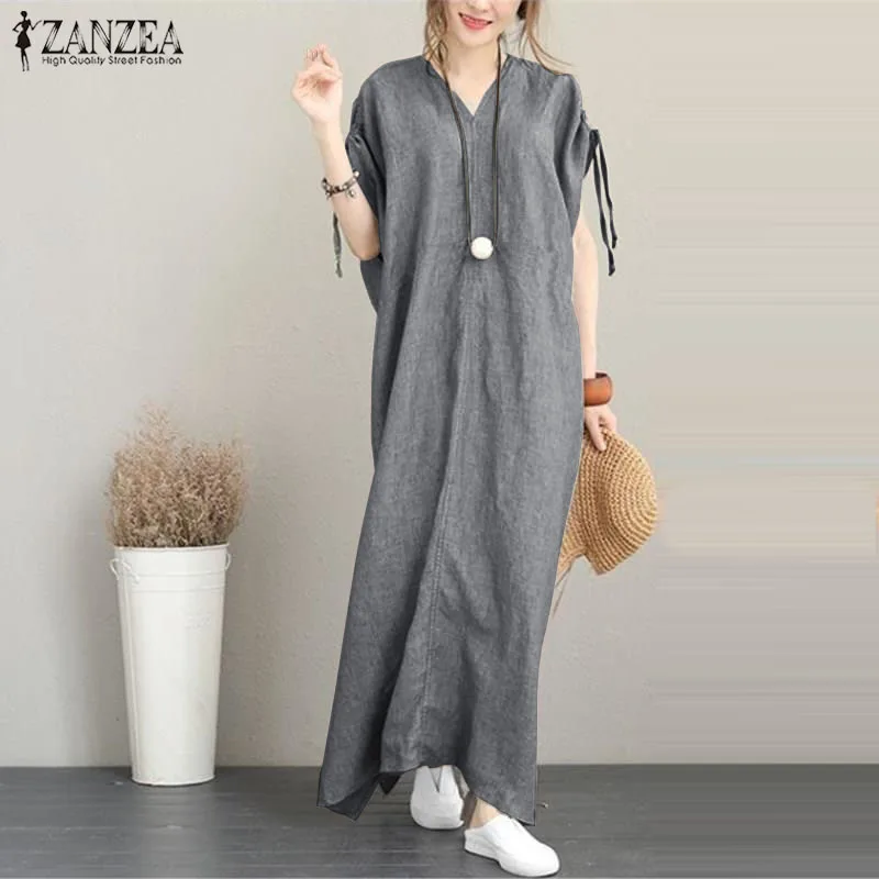 2019 г. ZANZEA летнее Женское Платье макси с v-образным вырезом и коротким рукавом элегантное офисное OL Vestido Femininas свободное повседневное длинное ...
