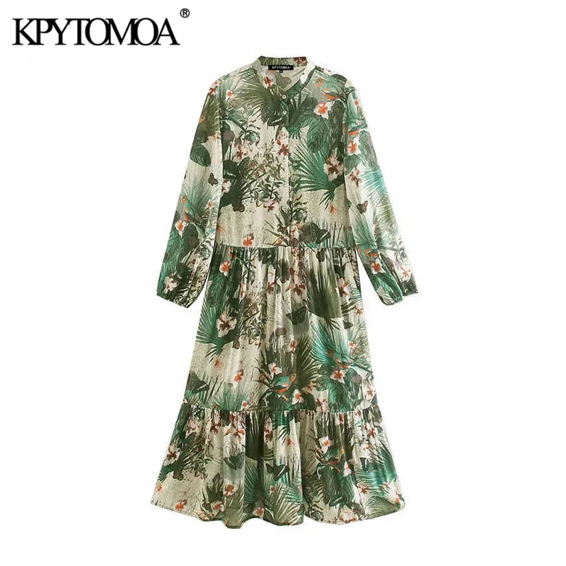 Винтажное стильное шифоновое платье миди с цветочным принтом и пуговицами для женщин 2020 модное женское платье с круглым вырезом и длинным рукавом шикарные платья vestidos mujer