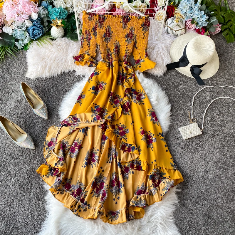 Boho 2020, сексуальное платье с цветочным принтом, с открытыми плечами, миди, длинное, с оборками, летнее, вечерние, женское, повседневное, элегантное, Пляжное, праздничное, необычное платье
