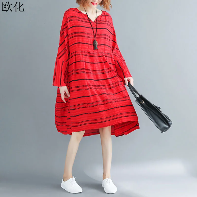 2020 новое летнее платье размера плюс с длинным рукавом полосатое хлопковое платье винтажное льняное Плиссированное Платье женское платье 4XL...