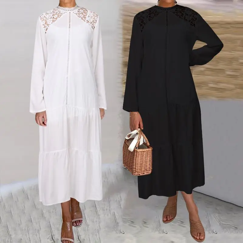 Плюс Размеры Открытое платье без рукавов Для женщин с длинными рукавами, кружевом и строчкой по краю и белое платье 2019 Celmia женские, повседне...