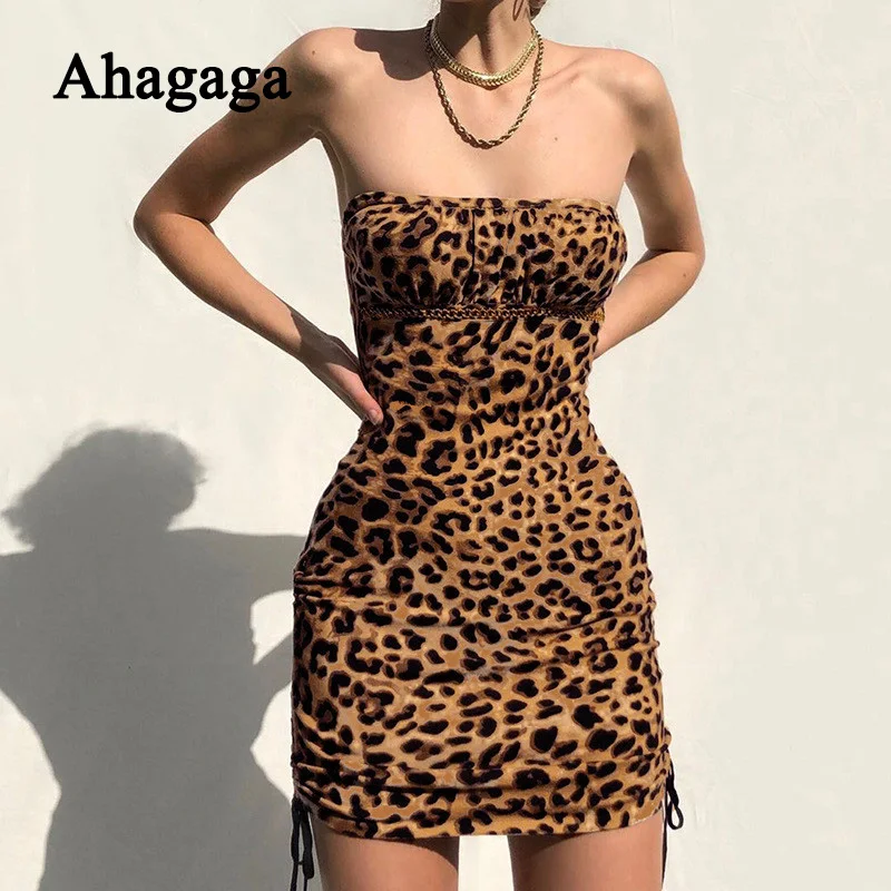 2019 сексуальное леопардовое платье без бретелек, женское модное обтягивающее облегающее платье с открытой спиной для ночного клуба без рука...