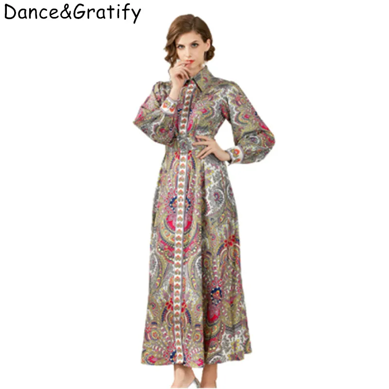 Женское дизайнерское подиумное платье 2020, Длинное Макси платье, Весенняя винтажная одежда с цветочным принтом, большое свободное офисное вечернее платье