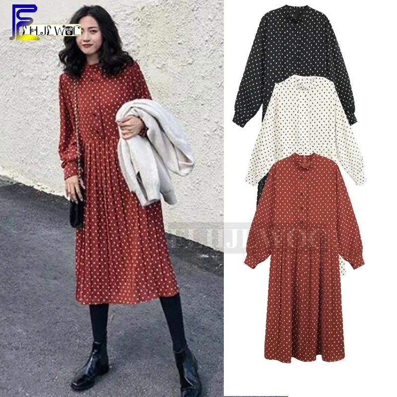 2019 весна свободные плюс размеры одежда платья для женщин для корейский стиль дизайн темперамент леди печатных Винтаж Платье в горох