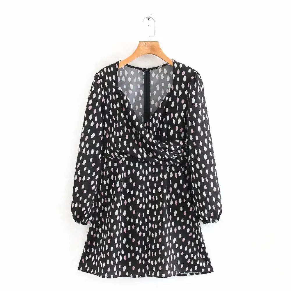 Женское винтажное мини-платье с v-образным вырезом и принтом, с длинным рукавом, на молнии, DS3376, новинка 2020