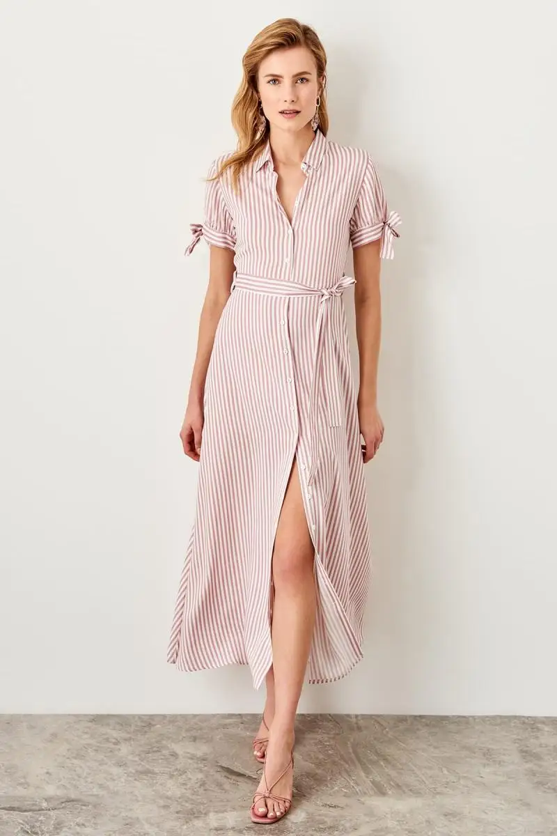 Trendyol розовое платье в полоску TWOSS19ST0093