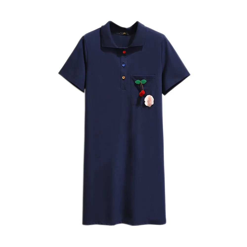 Женская одежда, спортивная рубашка, платье, весна-лето 2020, новинка, короткий рукав, отложной воротник, синий, зеленый, свободное платье-поло с вишневым воротником