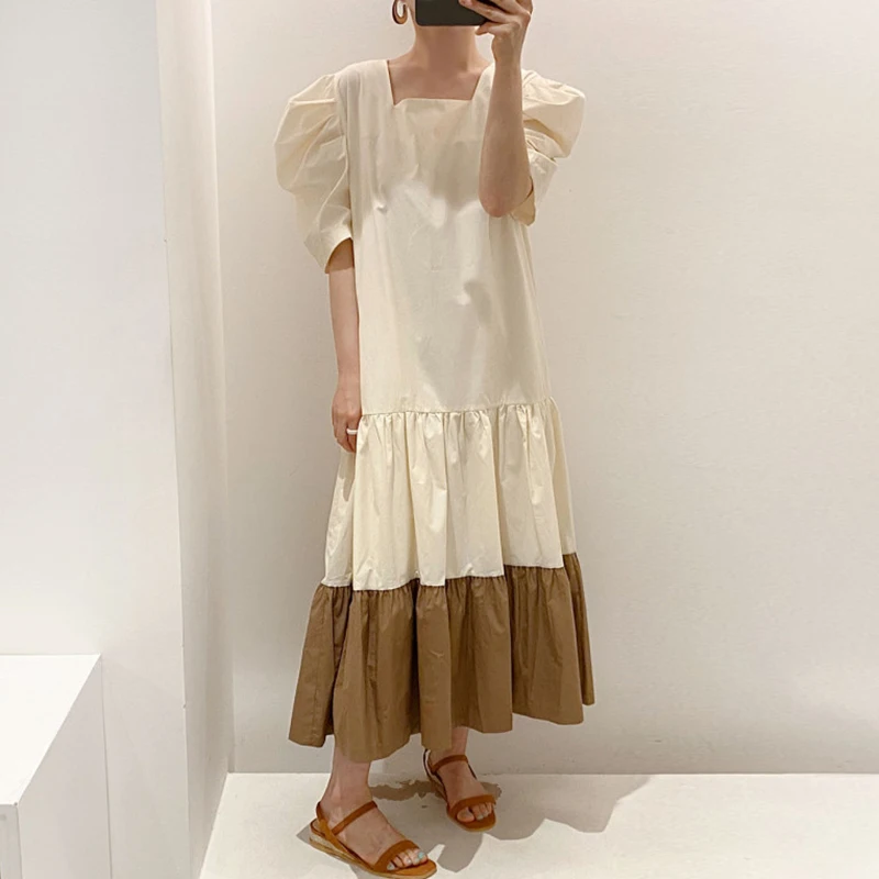 Женское длинное платье SHENGPALAE, длинное платье-мини с гофрированным краем и рукавами-фонариками, контраст, QV1174, осень 2020