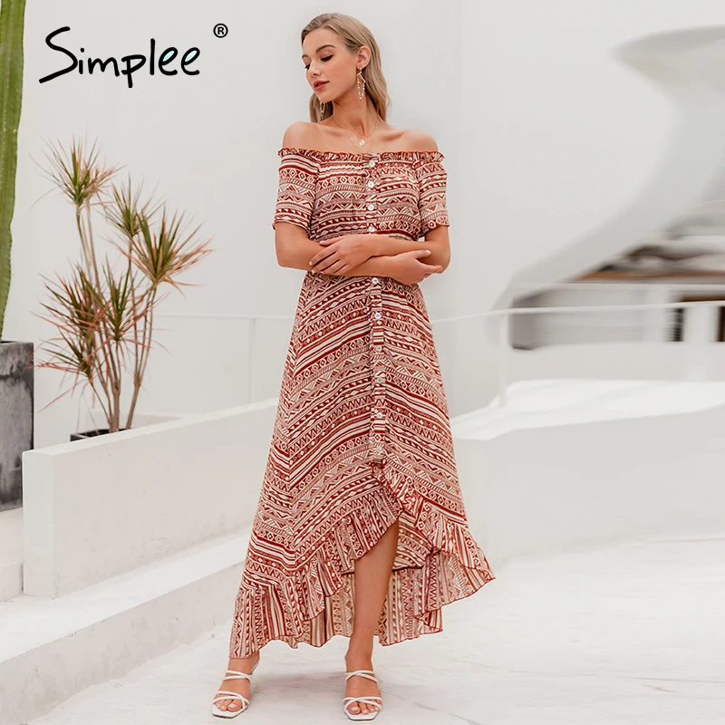 Simplee женское платье миди на пуговицах с открытыми плечами, с высокой талией, с геометрическим принтом, женское платье трапециевидной формы, весна-лето, женские пляжные платья