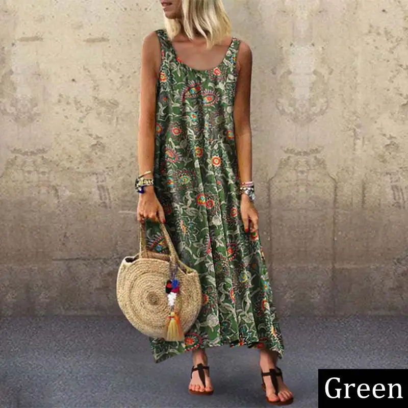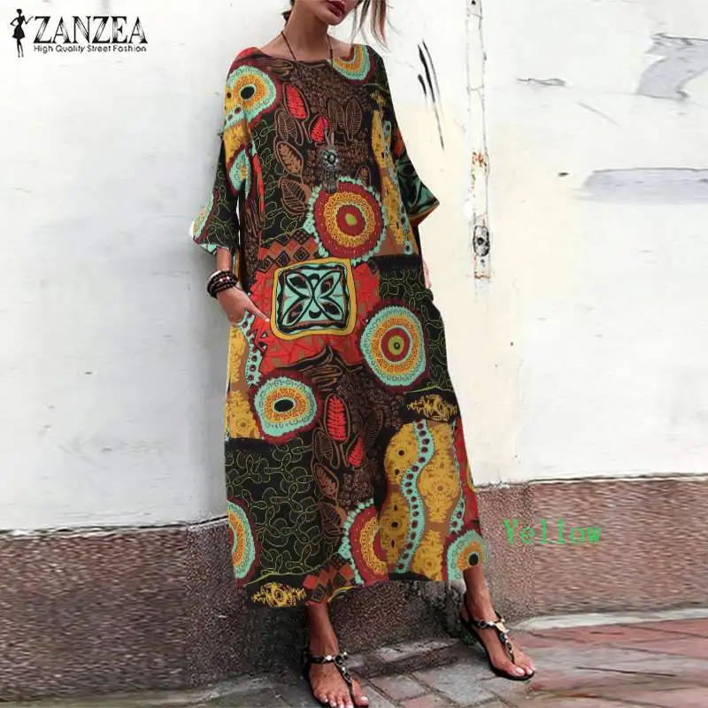 Женское платье с принтом ZANZEA, длинное винтажное платье большого размера из хлопка и льна в стиле бохо, лето 2019