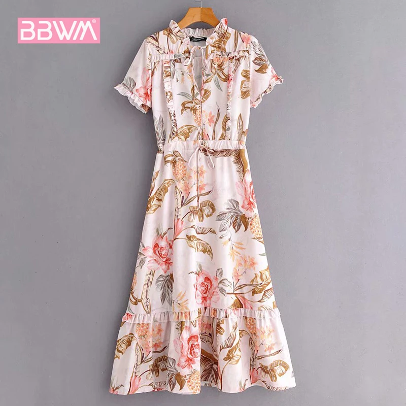 Женское платье с v-образным вырезом и коротким рукавом, длинное платье в национальном стиле, лето 2020