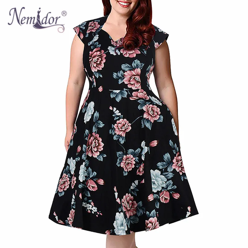 Nemidor женское вечерние Повседневное платье в горошек с коротким рукавом элегантное вечернее платье трапециевидной формы с v-образным вырезо...