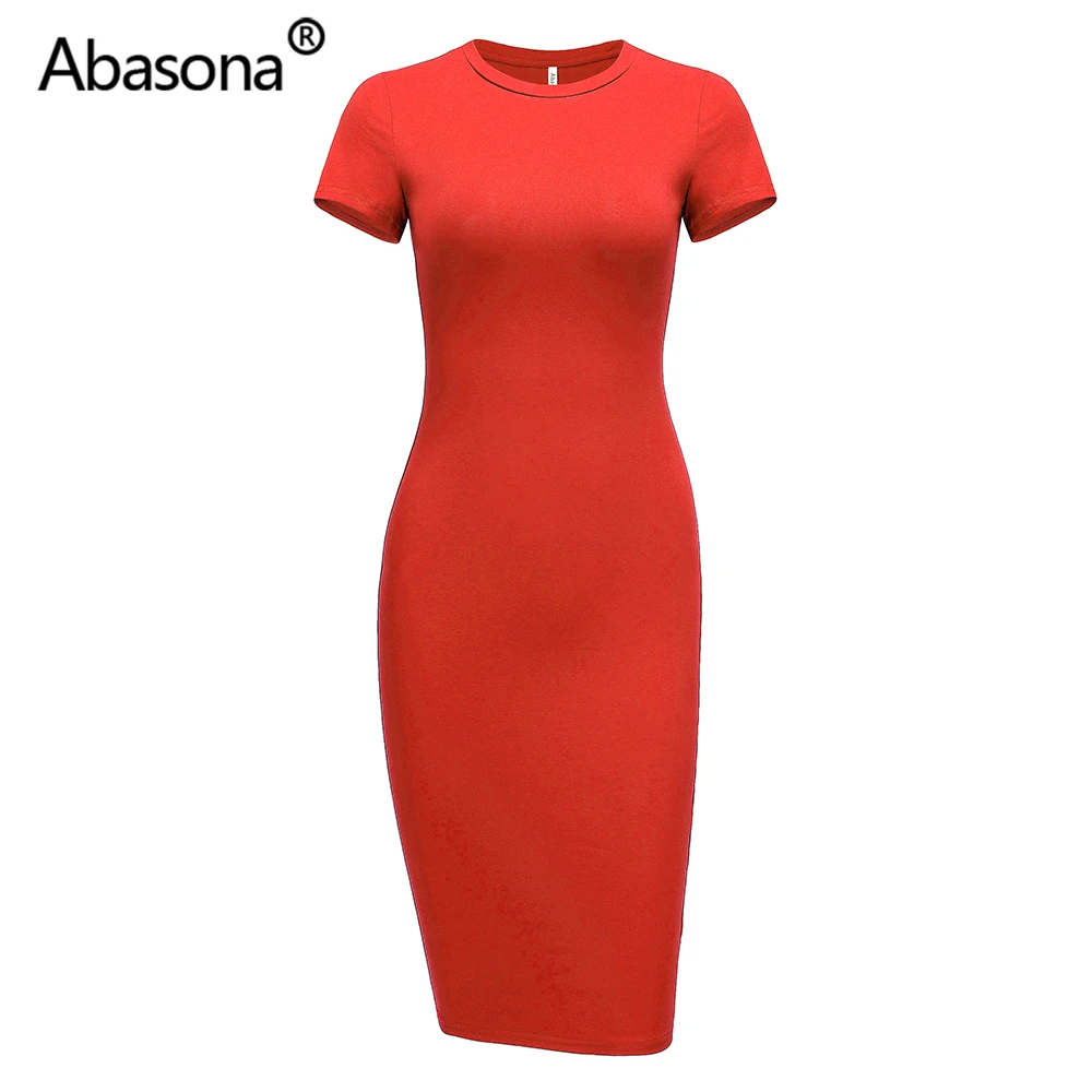 Abasona, хлопковая облегающая Сексуальная обтягивающая юбка-карандаш средней длины, платье размера плюс с коротким рукавом и круглым вырезом, Офисная Женская летняя одежда 2020, повседневные платья