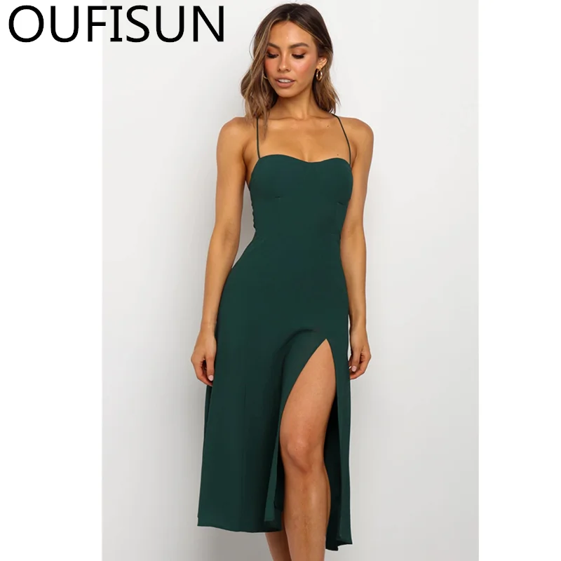 Oufisun летние сексуальные вечерние платья на бретельках с открытой спиной, Модное Длинное Платье с низкой грудью в стиле ампир, повседневные о...