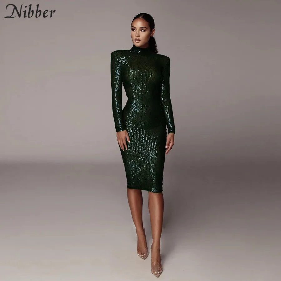 Nibber/осенне-зимние элегантные рождественские вечерние платья бодикон для женщин, блестящие Клубные Простые платья с длинным рукавом mide mujer