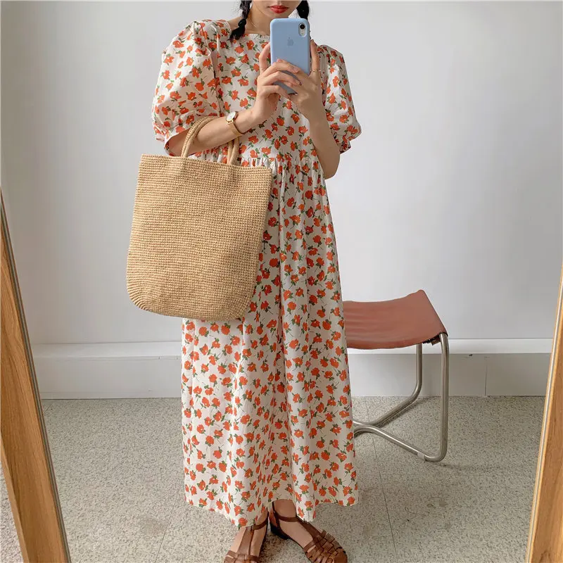 Винтажные хлопковые платья с рукавами-фонариками Alien Kitty 2020, винтажные уличные повседневные свободные длинные платья с цветочным принтом для девочек