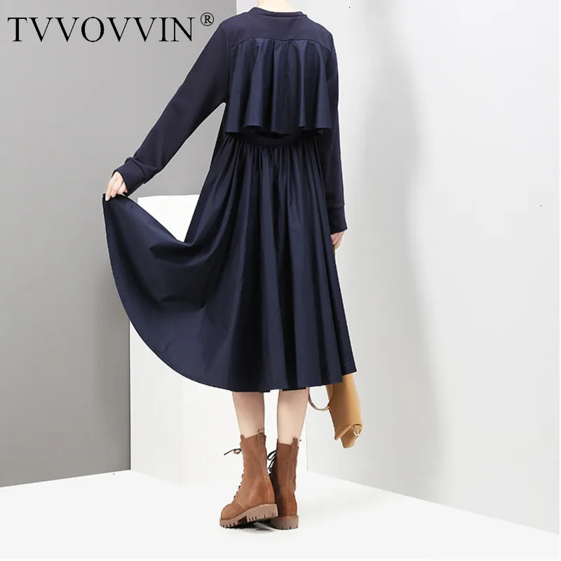 TVVOVVIN, женское плиссированное платье с открытой спиной, новинка, круглый вырез, длинный рукав, свободный крой, мода осень 2019X548