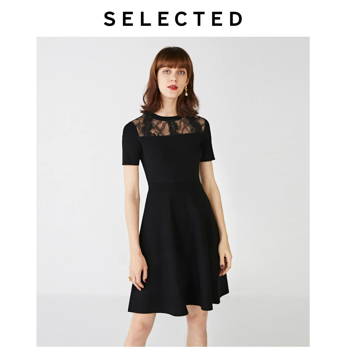 Женское приталенное платье с кружевной вышивкой и вырезами A-lined S | 419346514