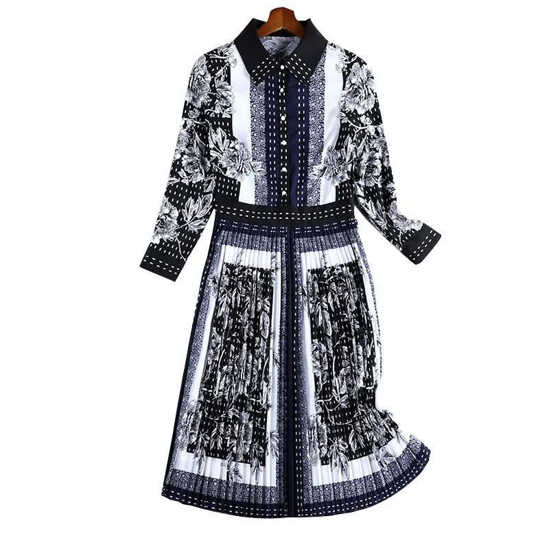 Женское винтажное шифоновое платье с длинным рукавом и отложным воротником, весна-осень, большие размеры, новинка 2020