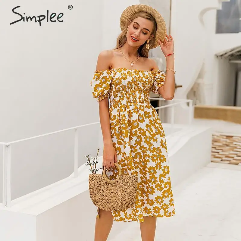 Simplee цветок женское платье Бохо Весна с пышными рукавами Высокая талия женское летнее платье женские шикарные гофрированные трапециевидные праздничные миди платья