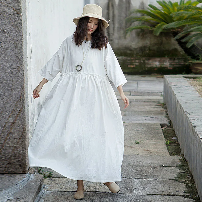 Летнее платье 2018 Yuzi. may Boho новые хлопковые льняные женские платья с v-образным вырезом и рукавами-фонариками однобортные свободные платья A82087