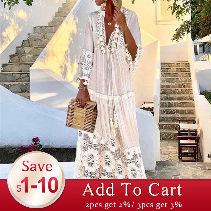 Лето-осень, сексуальное богемное платье с v-образным вырезом и кисточками, открытые женские платья, новинка 2019, богемное пляжное платье с цве...