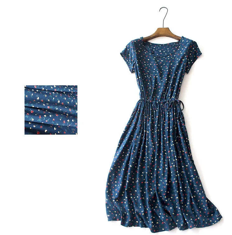 Деревенское цветочное Цветочное платье с круглым вырезом и короткими рукавами с карманами на шнурке mori girl 2018