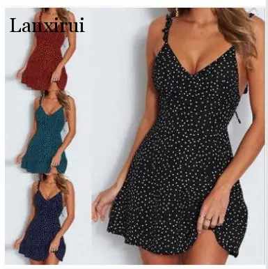 2019 летнее женское платье в горошек с v-образным вырезом и оборками Мини-Платье Ретро винтажные платья без рукавов