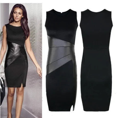 Плюс размер 5XL Сексуальное Тонкое Платье Карандаш женское без рукавов на молнии Черное Сетчатое элегантное женское платье из искусственной кожи лоскутное платье-футляр
