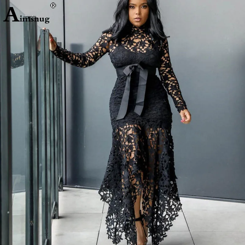 Большие размеры 3xl 4xl винтажные Вечерние черные сексуальные кружевные длинные платья для женщин 2019 осенние сетчатые полые облегающие зелен...
