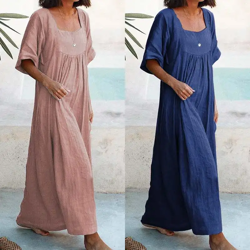 Винтаж Для женщин летний сарафан ZANZEA 2019 Повседневное квадратный вырез длинное платье с коротким рукавом Vestidos женский с со складками больши...