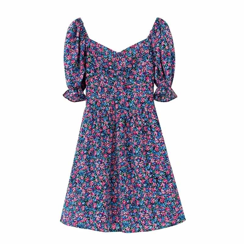 Женское милое мини-платье с v-образным вырезом и пышными рукавами и принтом, модель 2020 года, повседневные эластичные облегающие платья в стиле кантри DS3775