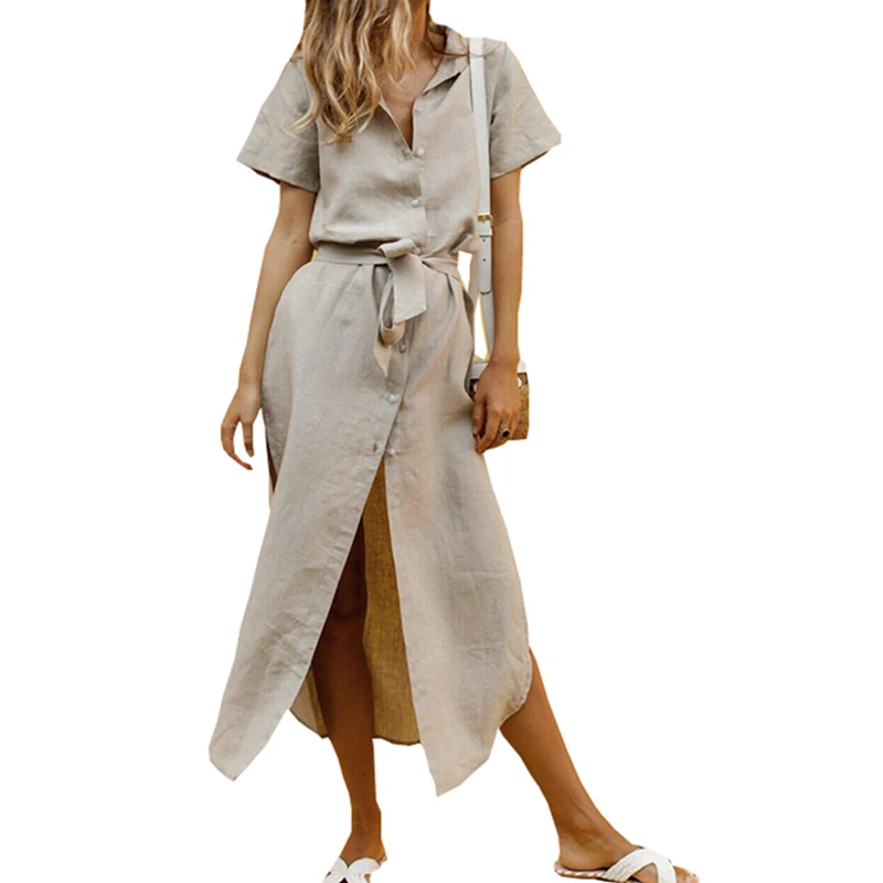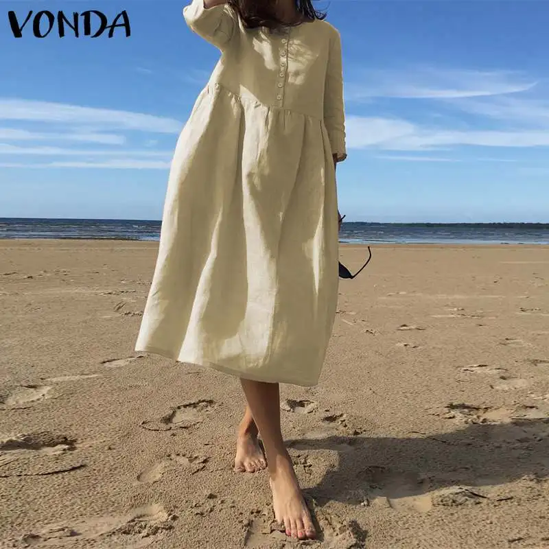 Женское богемное платье VONDA, повседневное однотонное Хлопковое платье-рубашка больших размеров для вечеринок, S-5XL, 2020