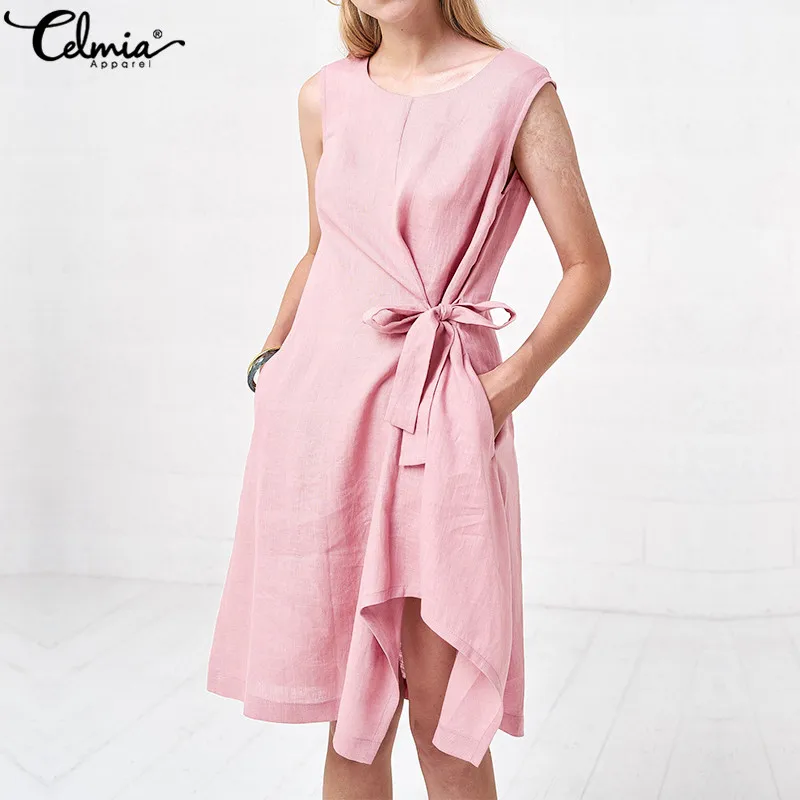 Женское летнее платье без рукавов Celmia, повседневное свободное пляжное платье с высокой талией и бантом для вечеринки, большие размеры, лето 2020
