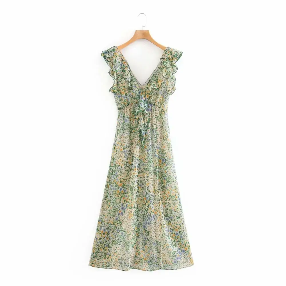 2020 женское Модное шифоновое платье миди с v-образным вырезом и каскадными оборками, женские летние Брендовые платья на молнии сзади DS3770