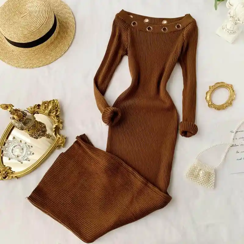 Женское трикотажное платье NiceMix Vestido, элегантное платье средней длины с длинным рукавом и круглым вырезом, осень 2020